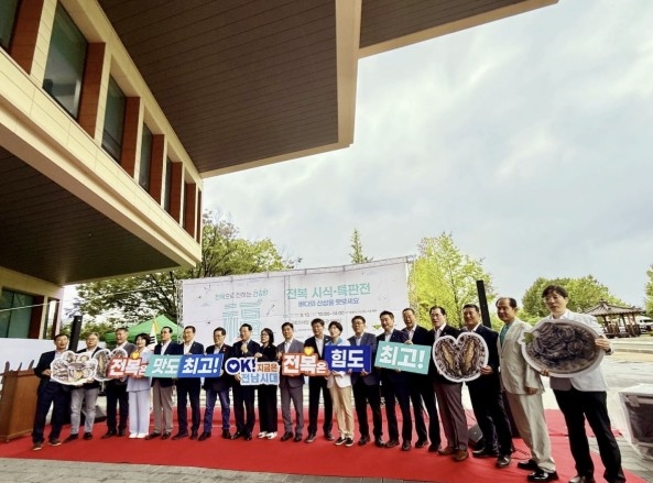 국회서 열린 전복 소비 촉진 행사에서 참석자들이 기념 촬영을 하고 있다. <부자비즈> 얌샘김밥이 전라남도와 협력해 내놓은 전복 제품은 전복 통김밥,전복 물쫄면,전복 게살 볶음밥,전복 비빔밥 등이며,이 메뉴는 230개가 넘는 얌샘김밥의 전국 매장에서 판매되고 있다. 얌샘김밥의 적극적인 참여 덕분에 불볕더위 속에서 진행된 행사는 활기를 띠었다. 행사장에서 얌샘김밥의 김은광 대표는 전국 가맹점을 통해 지역 수산물 판로 확대에 기여할 것을 약속했다.
