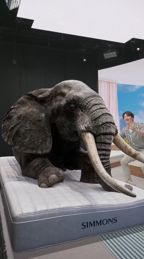 최근 매일경제가 찾은 경기 판교 네이버 1784 사옥의 '비전스테이지 쇼핑라이브' 제작 현장. 라이브방송을 진행하던 제작진은 "바람이 스치는 열대 숲도,침대에 앉아 있는 매머드도 모두 AI를 활용하면 눈앞에 있는 것처럼 생생하게 구현할 수 있다"고 강조했다.