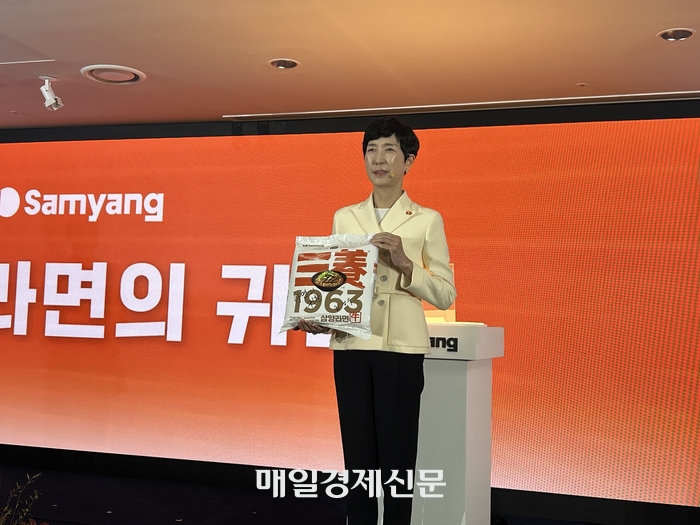 삼양식품은 3일 오전 서울 중구 보코서울명동 호텔에서 신제품 ‘삼양1963’ 출시 발표회를 열고 60여년 전 출시된 삼양라면의 맛을 현대적으로 재해석한 차세대 라면을 공개했다.