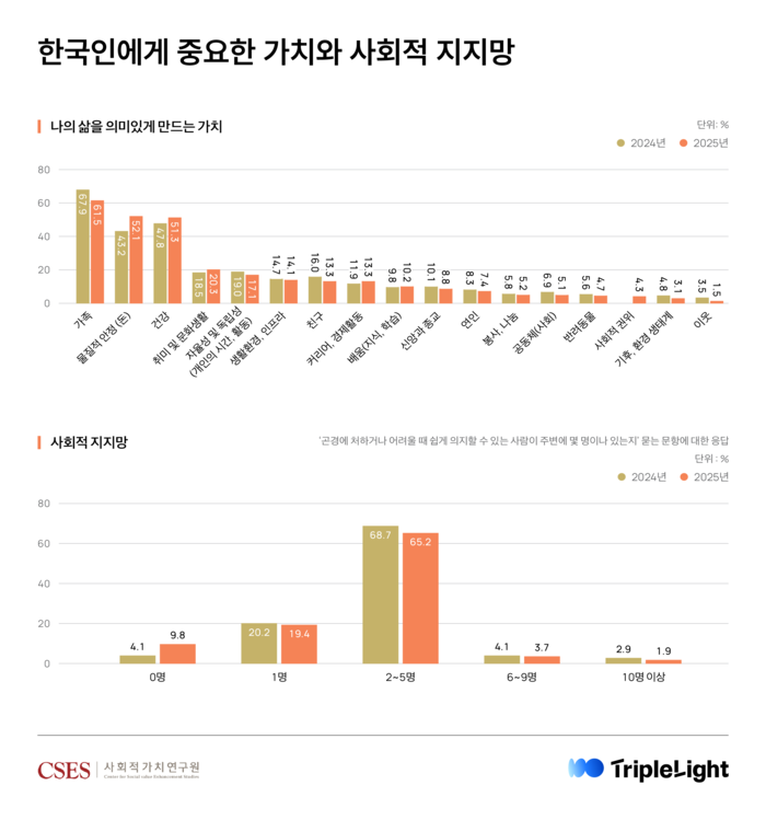 이번 연구를 진행한 이은창 ‘트리플라잇㈜’ 임팩트 데이터 리드는 “특히 주변에 의지할 사람이 없는 국민은 특히 경제와 환경 문제로 어려움을 겪는 모습도 나타났다”면서 “경기 침체와 사회 갈등이 심화되면서 개인화,개별화가 진행되는 현상이 데이터 전반에 걸쳐 나타나고 있다”고 분석했다.