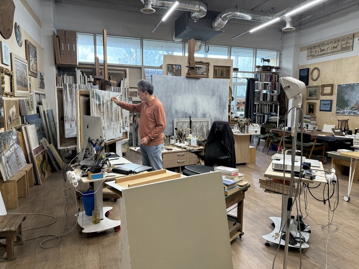 지난달 말 찾은 경기도 고양시 삼송테크노밸리. ‘웅~’ 하는 기계음과 지게차 소리가 공장 지대 풍경을 연상케 했다. 차량이 길게 서 있는 옆 문을 열자 딴 세상이 펼쳐졌다. 사방 벽에는 누드화와 초상화가 걸려 있고,자작나무 겨울 풍경이 이젤 위에서 채색을 기다리고 있었다. 초상화가 이원희(69)의 화실이다. 7m가 넘는 높은 층고에서 뿜어져 나오는 개방감이 압도적이었다.
