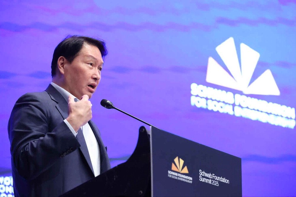 최태원 SK그룹 회장(사진)이 지난 9일 열린 '2025 리그 오브 레전드 월드(LoL) 챔피언십',일명 롤드컵 결승전에서 역대 최초로 3연속 우승을 거머쥔 e스포츠 구단 T1에 축전을 보냈다.