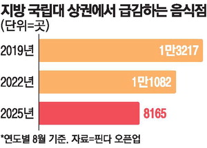 지역거점 대학 8곳 인근 음식점 6년새 40% 급감