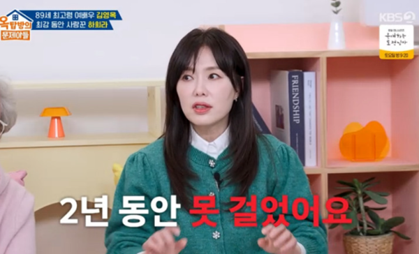 하희라는 과거 촬영 중 겪었던 아찔한 사고 소식을 전하며 “2년 동안 못 걸었던 적이 있다. 촬영하다가 오토바이에서 떨어져서 등을 다쳤다”고 털어놨다.