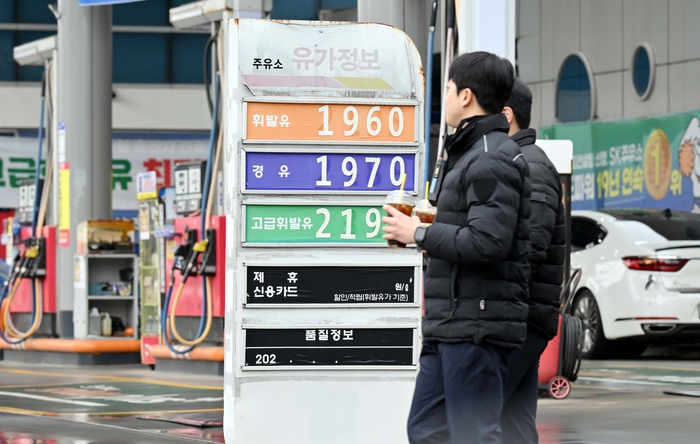 시민들이 서울 시내 주유소에 세워져 있는 가격표 앞을 지나고 있다. [김재훈 기자] 미국과 이란 간 긴장 고조로 국제유가가 상승하면서 국내 생산자물가도 6개월 연속 오름세를 이어갔다.