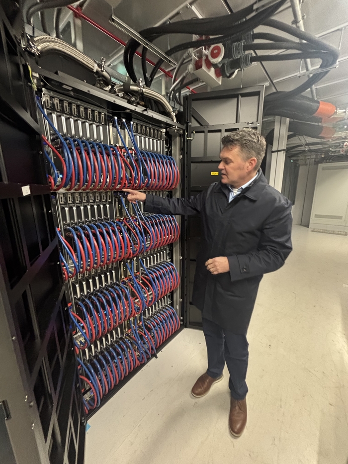 내부로 들어서자 약 5500개의 엔비디아 GH200 그레이스 호퍼 슈퍼칩이 장착된 검은색 랙(Rack)들이 늘어서 있었다. 이 시스템은 영국 내 다른 어떤 슈퍼컴퓨터보다 10배나 빠르며,전 세계 순위 11위에 이름을 올리고 있다. 스미스 센터장은 “AI만 전용으로 하는 슈퍼컴퓨터는 이삼바드AI가 유일한 것으로 안다”고 설명했다.