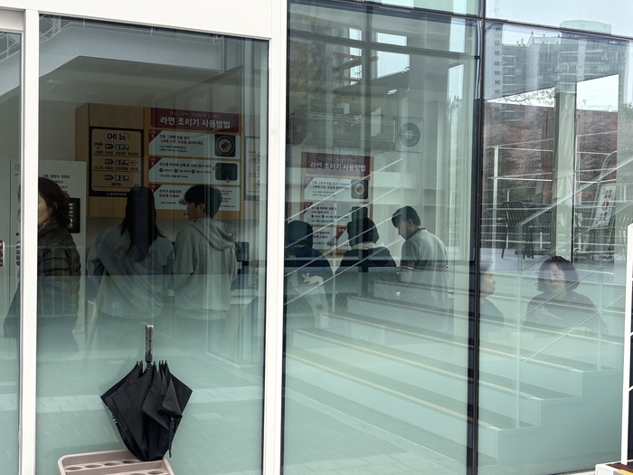 라면조리실 무인자판기/사진=김지은 여행+ 기자 카페 옆 별도 공간으로 조성된 라면조리실도 인기다. 무인 자판기와 셀프 조리기를 활용해 이용할 수 있으며,기존 두물마루와 당현마루에서 반응이 좋았던 운영 방식을 반영했다. 진라면,무파마,짜파게티 등 판매 순위가 높은 인기 라면 10종을 갖췄고 김치와 단무지도 함께 판매한다.
