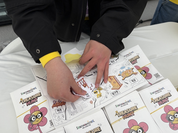 서울스프링페스티벌의 체험형 프로그램인 트레저헌트/사진=김지은 여행+ 기자 각 선착장에서 체험을 하고 스티커를 모으면 상품을 증정하는 ‘트레저 헌트’ 이벤트도 진행한다.