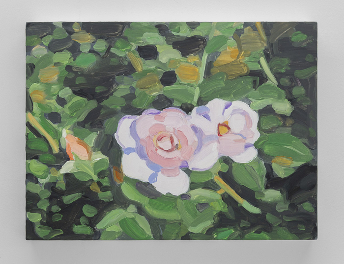 모린 갈라스의 ‘Pink Roses,Dark’(2024) <글래드스톤> 작가는 유행을 따르기보다 자신만의 독창적인 스타일을 개발하는 데 헌신했다. 그가 본격적으로 활동을 시작한 1980년대 뉴욕 미술계는 강렬한 에너지를 앞세운 신표현주의와 해체를 강조하는 포스트모더니즘의 거센 물결이 휩쓸고 있었다. 이 흐름과 반대로 작가는 미국 북동부 지역의 아름다운 정원과 꽃을 그리는 데 천착했다.