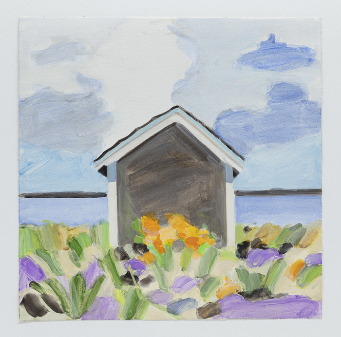 모린 갈라스의 ‘Surf Drive’(2025) <글래드스톤> 화면 속에는 뉴잉글랜드 해안가의 오두막,수풀 사이의 집,꽃들이 등장한다. 이는 단순히 눈앞의 풍경을 옮겨놓은 것이 아니다. 작가는 풍경을 찍은 사진을 활용해 대상을 수없이 분석하고 정제해 형태와 색채의 본질만을 남긴다.
