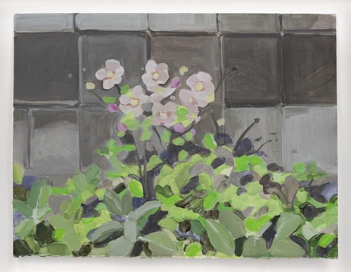 모린 갈라스의 ‘Summer Porch’(2025) <글래드스톤> 이 정제 과정에서 작가의 작업은 구상과 추상의 경계에 놓이게 된다. 화면 중앙에 집이나 꽃을 배치하고 주변을 하늘이나 풀잎으로 둘러싸는 특유의 공식을 사용하면서도,집의 문과 창문을 지워버리거나 인물을 철저히 배제한다. 인물이 사라진 빈 풍경은 특정 장소의 기록을 넘어 관람자의 기억이 개입될 수 있는 보편적인 공간으로 확장된다.