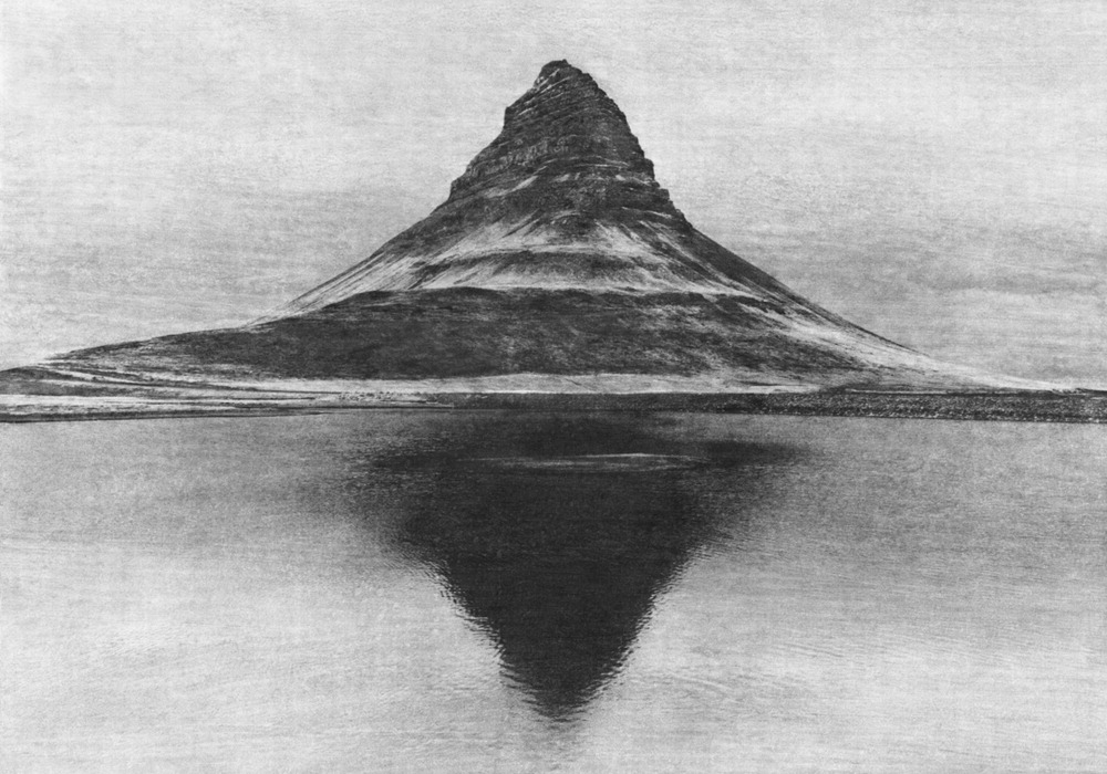 작가 이정진이 2024년 아이슬란드 산을 촬영한 작품 'Unseen #62'. 수묵화를 연상시키는 간결한 표현과 한지에 인화한 후 디지털 작업을 거친 독특한 기법으로 영국 미술계의 찬사를 받았다. PKM갤러리
