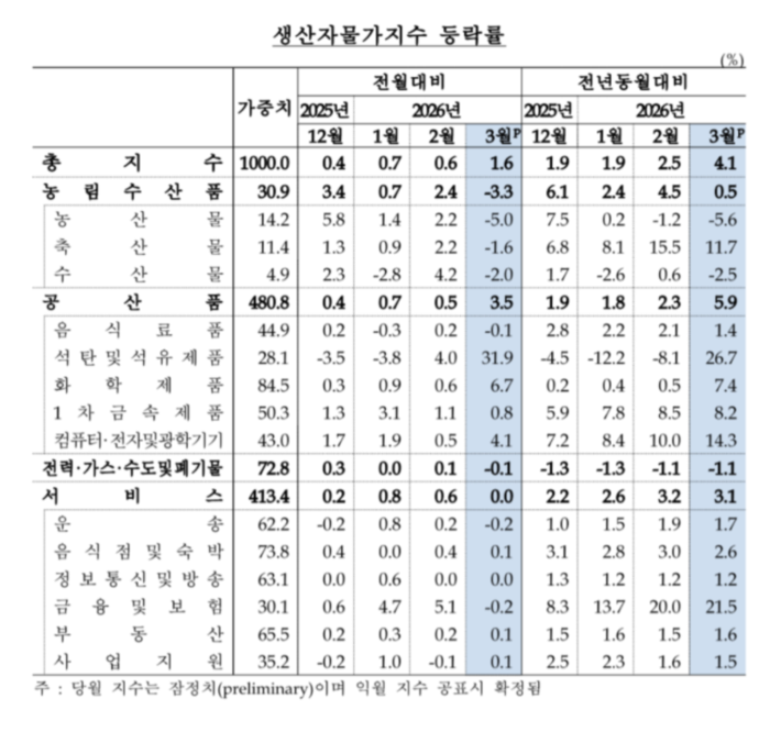 이문희 물가통계팀장은 “미국과 이란의 협상 불확실성이 매우 높아서 현재로서는 앞으로의 흐름을 가늠하기 어려운 상황”이라며 “생산자물가가 7개월째 상승세를 지속했고,3월에 큰 폭으로 오른 것은 소비자물가 상방 요인으로 작용할 것 같다”고 말했다.